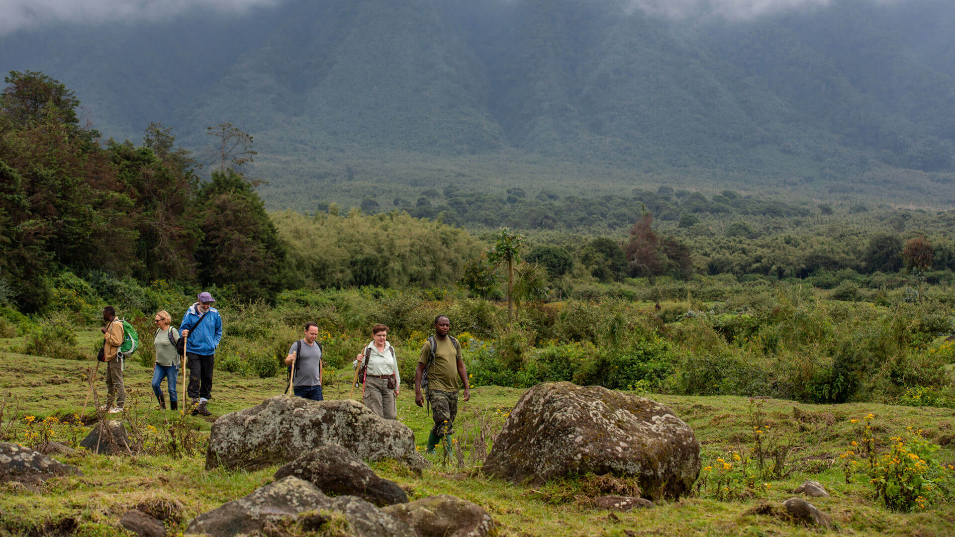 Guests moving through Volcanoes national park