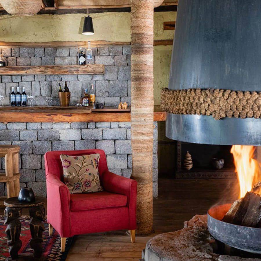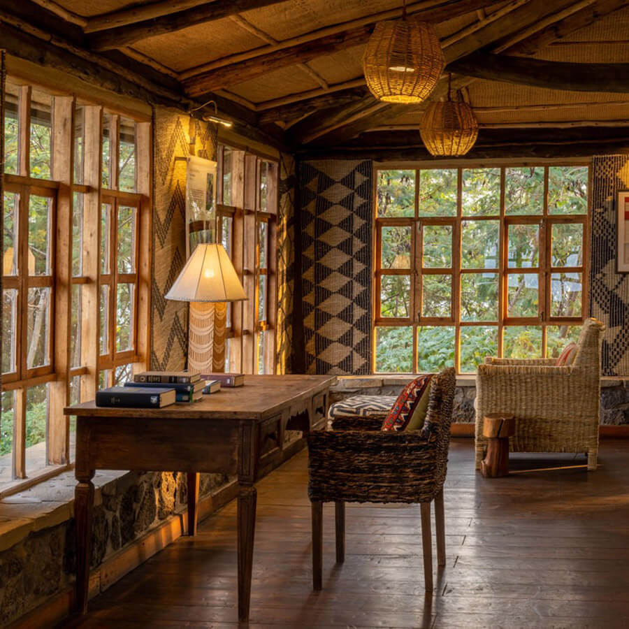 Guests at Virunga Lodge can take on gorilla and golden monkey treks, hike to the Dian Fossey gravesite, or explore nearby volcanoes. The lodge offers complimentary spa treatments, a communal dining experience, and cultural activities such as Intore dance performances. Sustainability initiatives include solar-powered facilities and community support programs like the “One Sheep per Family” project.