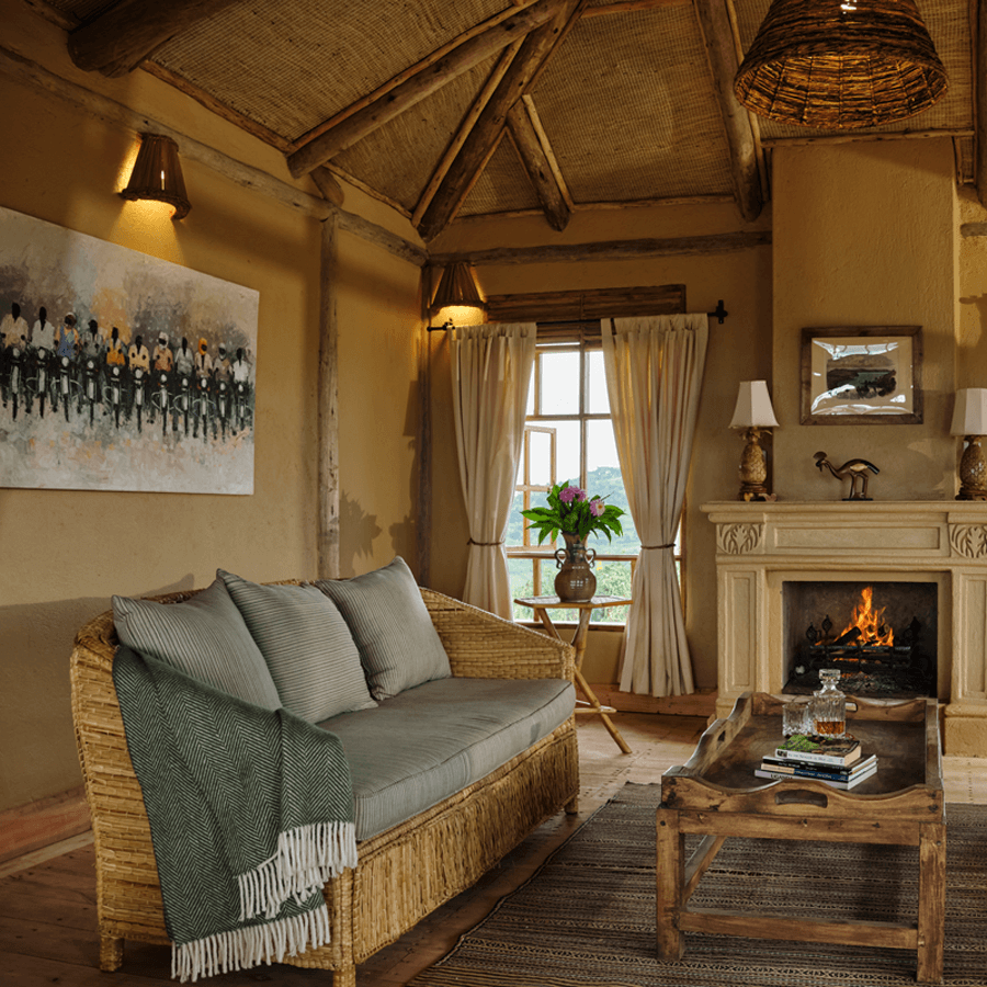 Designed by in-house artisans, each banda includes indoor and outdoor showers and mountain vistas. Guests track chimpanzees or participate in habituation sessions, Bigodi wetland walks, birding, and tree-planting around Lake Lugembe. The lodge operates a spa, sauna, pool, and donates to community outreach via Roots & Shoots and local school-vocational programs.