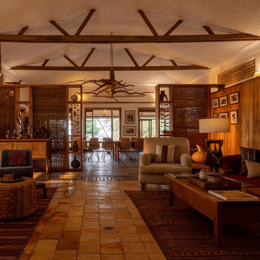 Converted from a former coffee warehouse, bandas include indoor-outdoor showers and mosquito nets. Shared amenities feature a saltwater pool, lounge, spa, and library. Activities span chimpanzee tracking, game drives in Queen Elizabeth, boat safaris, gorge-edge walks, and visits to a women-managed coffee cooperative. The lodge champions conservation through a buffer-zone restoration project and sustainable community partnerships