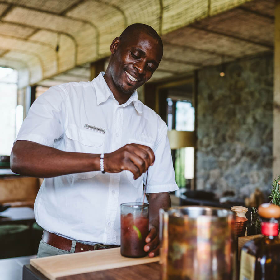 Using volcanic rock and handmade ceramics, the lodge integrates local artisan craft with eco-conscious design. Guests trek mountain gorillas, spot golden monkeys, explore a vegetable garden, and unwind at the spa. Operations support reforestation, community culinary training, and long-term conservation via the 4C sustainability model.